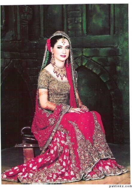 with your red lehnega, maybe your kameez can be all golden like this one and then u can add another color in there..that should do the job