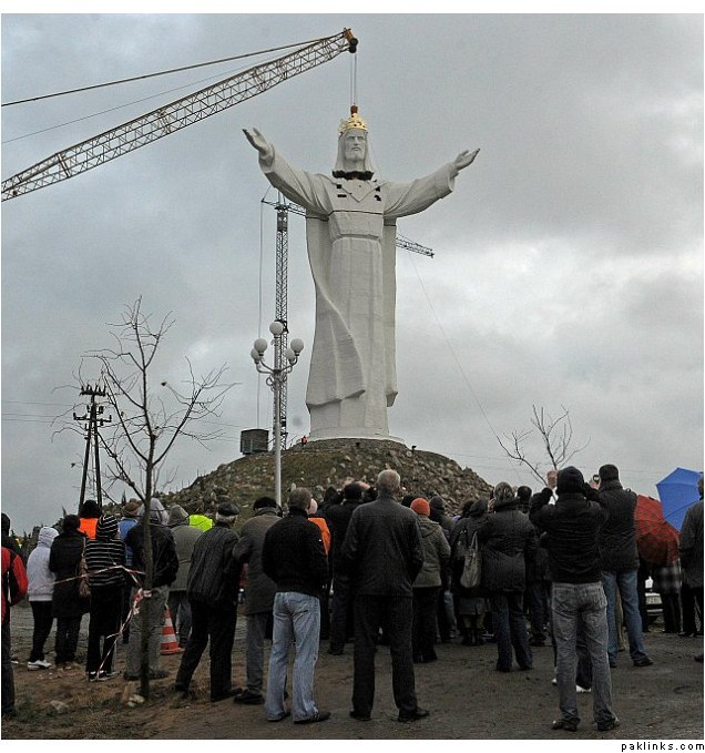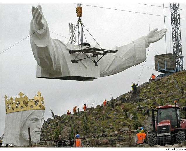At a total height of 170 feet, Poland’s enormous Jesus — officially called “Christ the King” — is taller than sky-scraping statues of Christ in Concordia, Bolivia, and Rio de Janeiro, Brazil, which have become popular tourist destinations.Some locals hope the massive statue, which was finished this weekend, will help turn their town of 21,000 into a tourist site. But others say the crown-topped Christ is tacky, according to the New York Daily News.