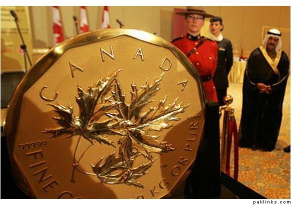 On June 25, 2010, the world’s largest gold coin, a 2007 Canadian $ 1,000.000 Maple Leaf is to be auctioned at Vienna’s Dorotheum.This monetary item is twenty inches (53 cm) in diameter and one inch thick. It’s made of 99.999 percent gold bullion and weighs 220 pounds (100 kilograms).The world record-breaking coin, which is also listed in the current edition of the Guinness Book of Records, bears the image of Elisabeth II.