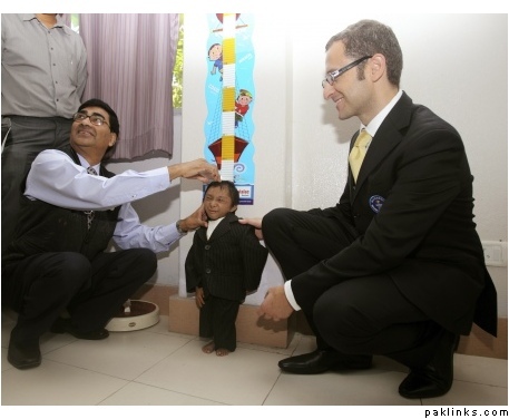 Khagendra Thapa Magar is 67.08 centimeters (26.4 inches) and weighs 6.5 kilograms (13 pounds), said Marco Frigatti, vice president of records at Guinness World Records, who flew in from London for the recognition.