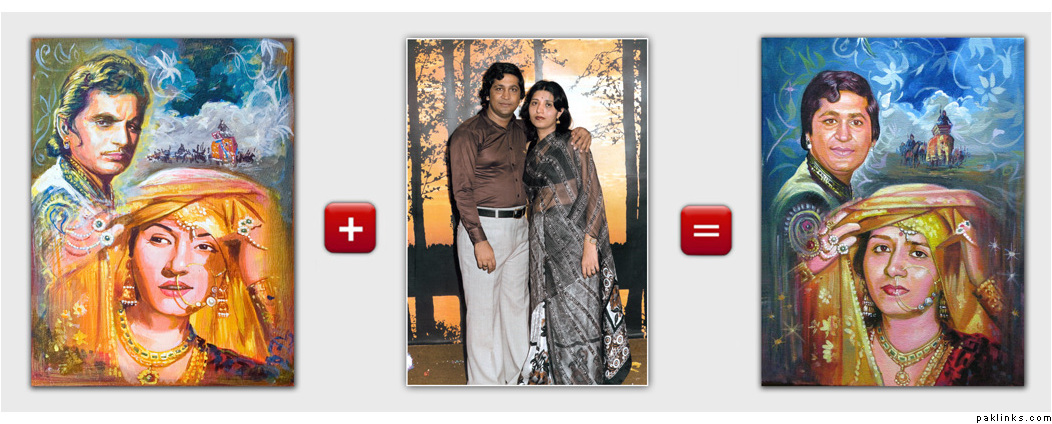 You and your fiance/hubby can star in a customized, hand painted, vintage Bollywood poster!