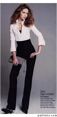 Here’s the opposite of skinny jeans. The highwaisted trouser look is on the runways. Would anybody wear these?