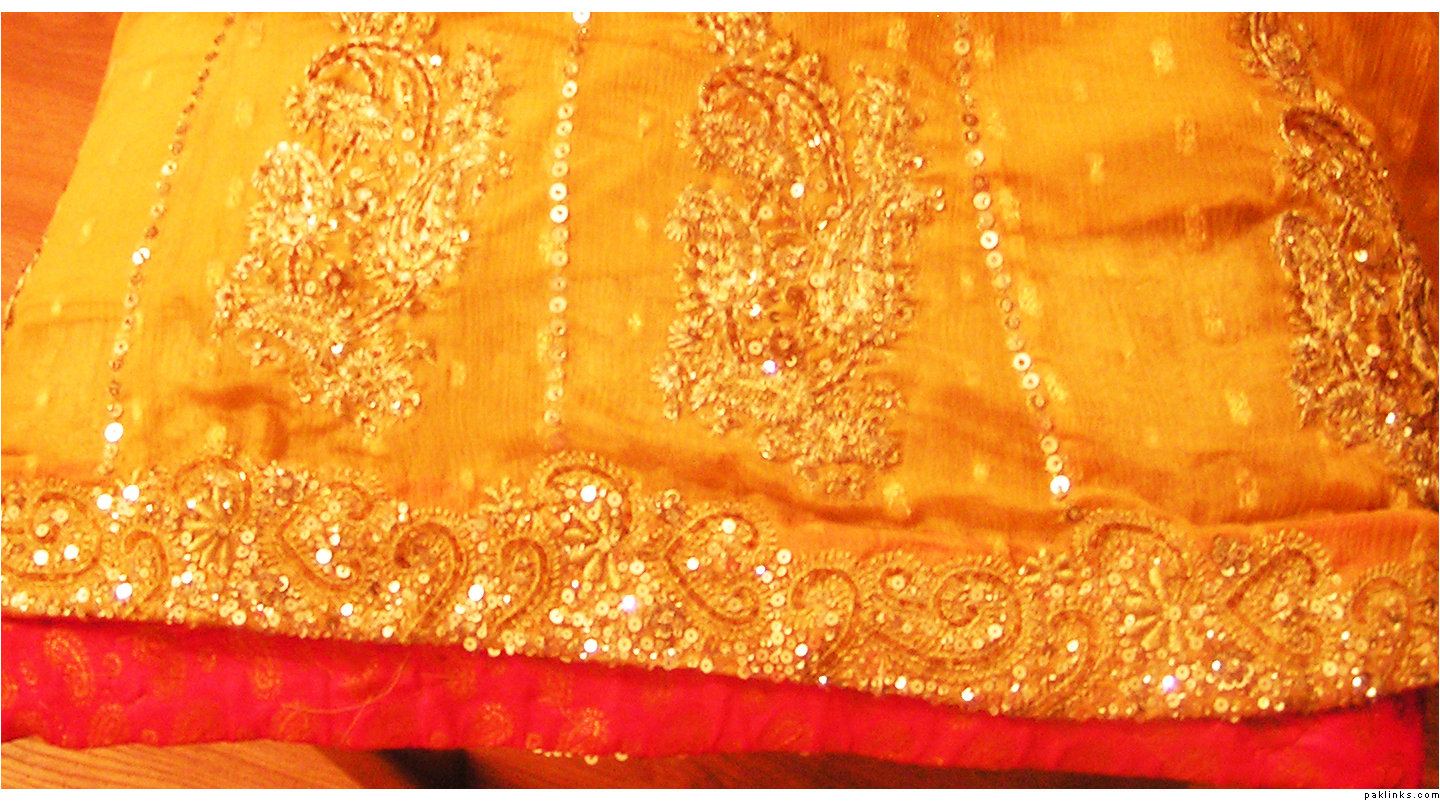 The pink banarsi is included in it’s finishing and dupatta. The embroidery continues to back as well. All the details of the dress are given above. Those interested please contact me on [email protected]