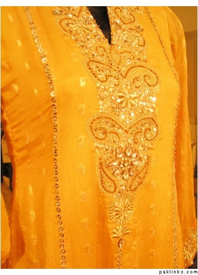 I have two dresses in yellow banarsi chiffon made in the following styles: