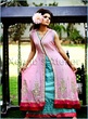 Banarsi fabric used for finishing in hot pink, with a pure crinkle chiffon dupatta with hot pink jamawar finishing and a dabka lace attached on all four sides. The pants are of pure dull silk and are straight. The dress is in UK size 12.