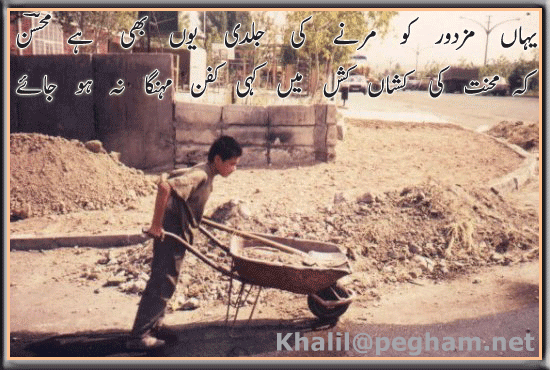 Lets share some poetry about Mazdoor to pay tribute to our labor force.