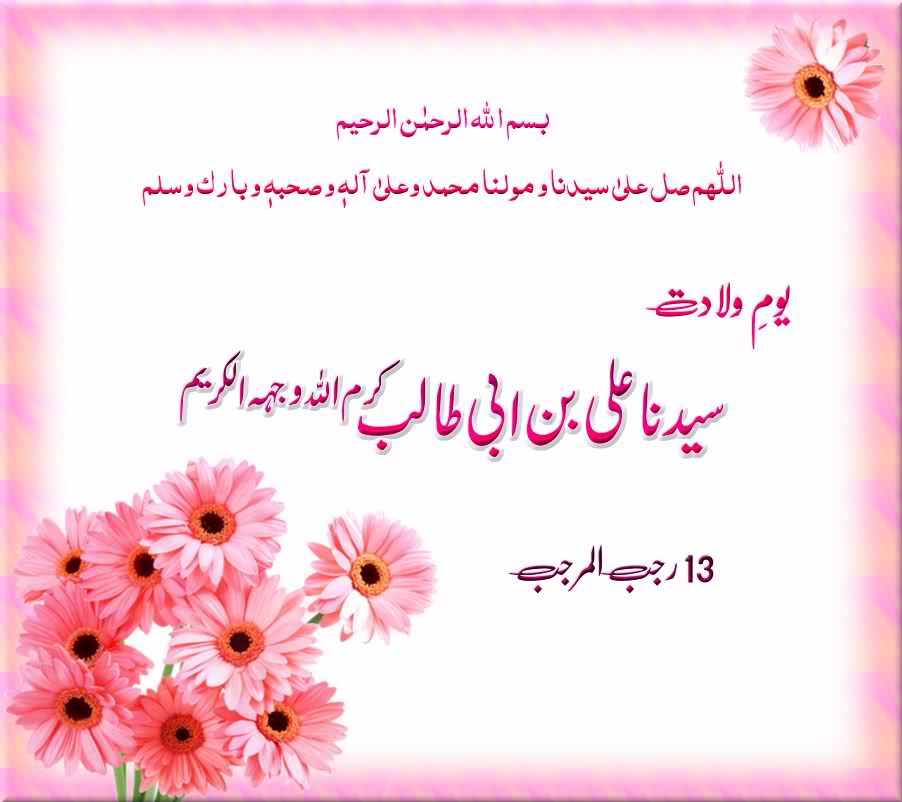 Today is the blessed birthdate of Ameer Ul Momineen(leader of the faithful), Bab Ul Ilm(door of knowledge), Imam ul Awliya(Leader of waliyat), Imam Ul Mutaqeen(leader of piety), Zoacha e Batool(husband of Fatima), Sher-e-Khuda(Lion of Allah), Moula Kiynaat( Spiritual master of all believers) Sayyiduna Ali ibn Abi Talib AlaiyhiSalaam.