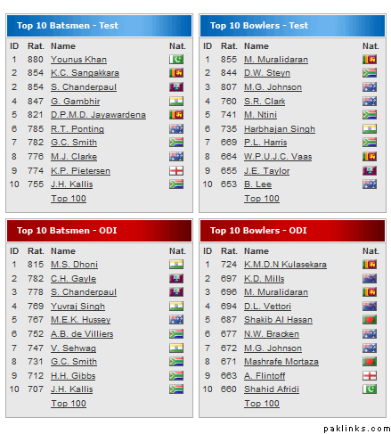 Re: Younis #1 Test Batsman & Afridi #10 ODI Bowler