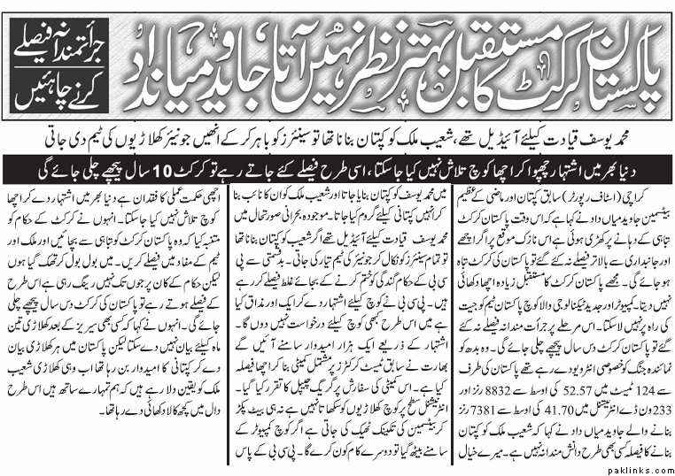 The inside story is that Younis has conveyed to the people at the helm of national cricket affairs that he has decided against accepting the team’s captaincy. A man of few words, Younis has not spoken his mind over the issue but has confided in a few close friends that he doesn’t expect to get any support from a few senior players in case he is made captain.
