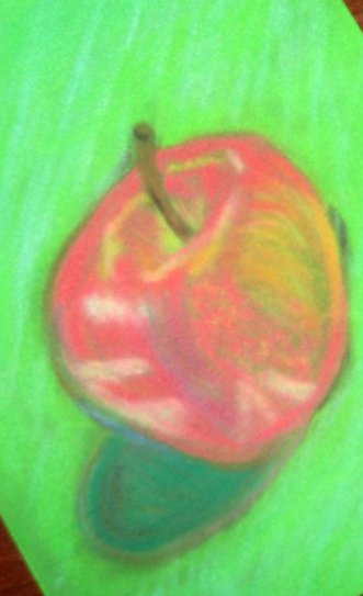 LOL Lilly, It was an in class project back in high school. We were asked to draw a realistic looking apple with chalk ( regular chalk kids play with). It was definitely a tough one since I am so used to using an eraser. You know you cant really erase anything on velvet so you have to be really careful with every stroke.