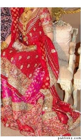 My fave bunto dress is of a bride whos picture we were asked not to save, red v neck kameez with a shocking pink lengha and gold/ivory kaam. It was to die for!