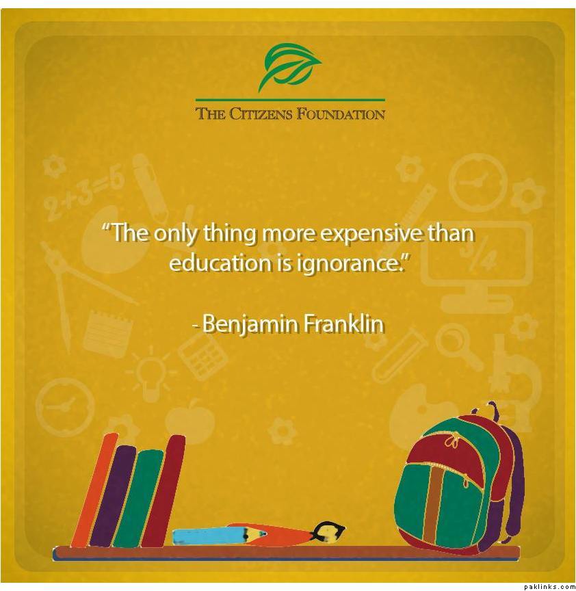 Came across this lovely, thought-provoking quote by Benjamin Franklin the other day: “The only thing more expensive than education is ignorance.”