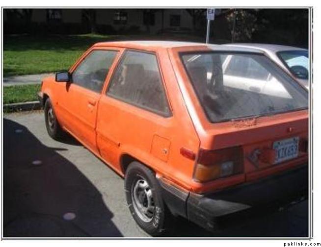 1992 Geo Prizm. No CD player, NO AC, the car was literally a ball of rust, the steering weel shock if the car was driven over 50 mph.