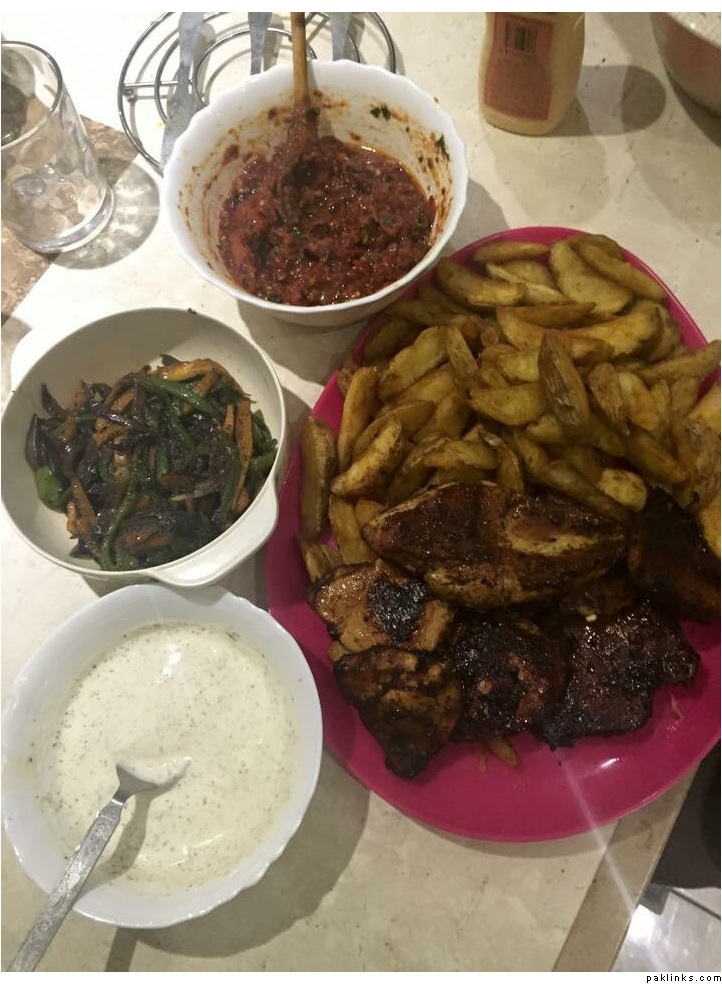 Today I had dahi phulki, Chicken qeema samosa, namak paray and then custard later.