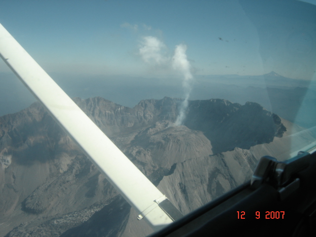 we flew by Mt St Helen, it had a wisp of smoke coming out of it!