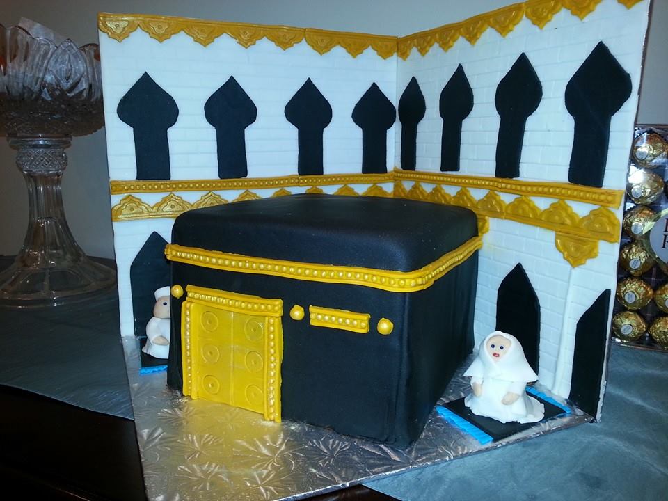 So some family has this cake made for one of their family member who recently came back from Hajj. Now apparently this would be cut and then eaten. What is your opinion about it? Is it ok, not ok at all or you dont care?