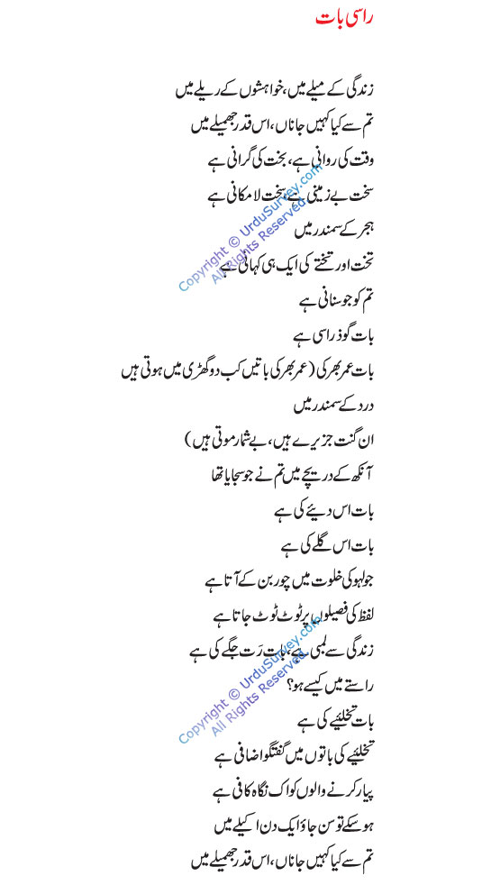 Original title of the Nazm is Zara See Baat. The image says 'RaSee Baat"
