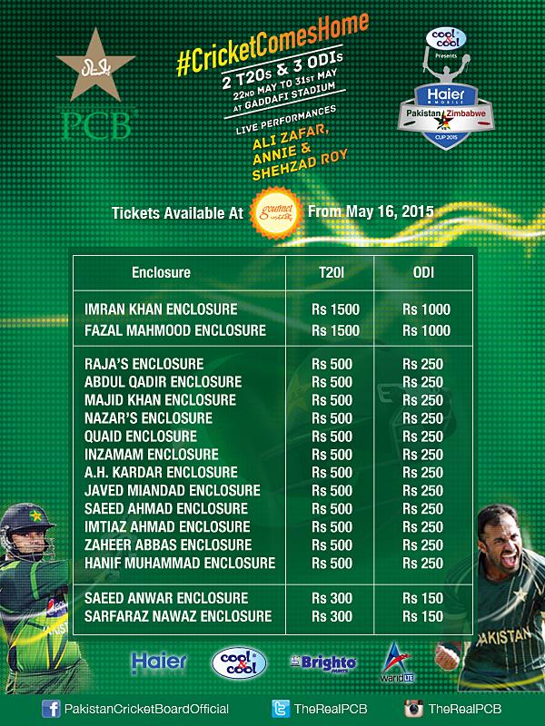 The tickets for the series are already on sale with Gourmet - a Lahore-based bakery and confectionery chain - the main merchant. The advertisements for the series had not covered the northern and eastern parts of the city until Sunday but according to the PCB the entire city will be covered in the b*****ng of the series by Monday. The hoardings around Gaddafi Stadium carry the words “Igniting a passion which brings a nation together” with the hashtag #cricketcomeshome](http://www.paklinks.com/gs/usertag.php?do=list&action=hash&hash=cricketcomeshome) .
